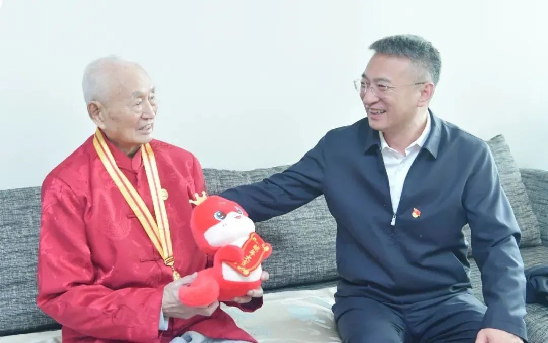 黃偉看望90歲高齡、72年黨齡,1947年參加革命工作的老黨員魏海。