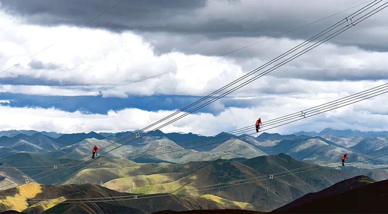 近年來(lái),中央企業(yè)把加強(qiáng)黨的領(lǐng)導(dǎo)和完善公司治理統(tǒng)一起來(lái),在維護(hù)國(guó)家戰(zhàn)略安全、保障和改善民生等方面更加擔(dān)當(dāng)作為。圖為2021年6月11日,國(guó)家電網(wǎng)四川送變電公司黨員先鋒隊(duì)員對(duì)四川省甘孜州兩河口水電站500千伏送出工程線路進(jìn)行消缺驗(yàn)收。 國(guó)務(wù)院國(guó)資委供圖 劉湘釩/攝