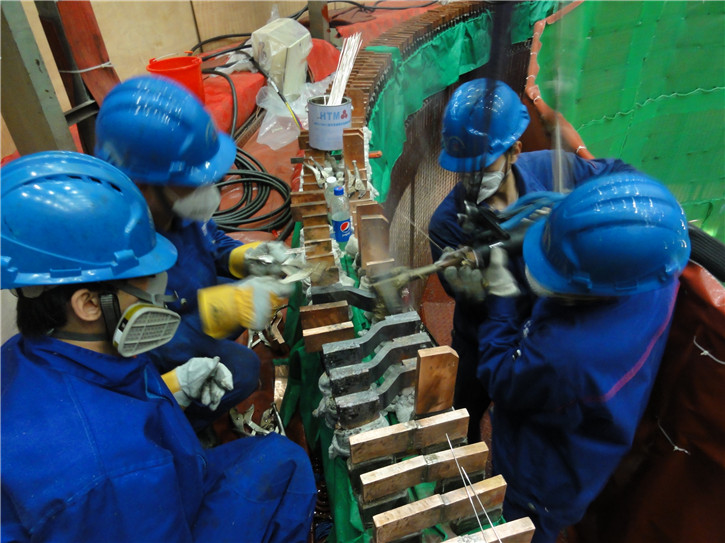 小灣水電站位于云南省大理州南澗縣與臨滄市鳳慶縣交界的瀾滄江中游河段,電站裝機(jī)6臺(tái)單機(jī)容量700兆瓦的混流式機(jī)組,其中4臺(tái)機(jī)組(分別是1號(hào)機(jī)、3號(hào)機(jī)、5號(hào)機(jī)和6號(hào)機(jī))由電機(jī)公司改造,為電機(jī)公司首次獨(dú)立完成70萬(wàn)機(jī)組定子裝配。小灣改造項(xiàng)目歷時(shí)4年,自2014年10月改造開工起,電機(jī)公司先后派遣200余人次趕赴電站執(zhí)行任務(wù)。為滿足電站的發(fā)電需求,改造周期一再壓縮,從3號(hào)機(jī)120天縮短至6號(hào)機(jī)100天,改造團(tuán)隊(duì)高標(biāo)準(zhǔn)嚴(yán)要求地完成了4臺(tái)70萬(wàn)千瓦級(jí)發(fā)電機(jī)定子的拆裝,得到了業(yè)主的高度贊揚(yáng)。