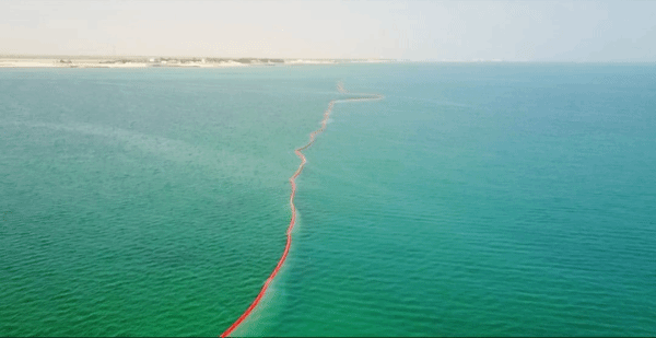 為了確保施工區(qū)周邊的珊瑚、水草群落不會(huì)受到疏浚海底絞吸作業(yè)和沉淀池排水所潛在的不利影響,為了保護(hù)這塊海洋動(dòng)植物的圣地,哈電集團(tuán)聯(lián)合國(guó)際知名咨詢(xún)公司的環(huán)境專(zhuān)家,經(jīng)過(guò)反復(fù)研究論證,確定了保護(hù)水質(zhì)的最佳方案——“防淤簾防污方案”,構(gòu)筑起橙紅色“防污染警戒線”。