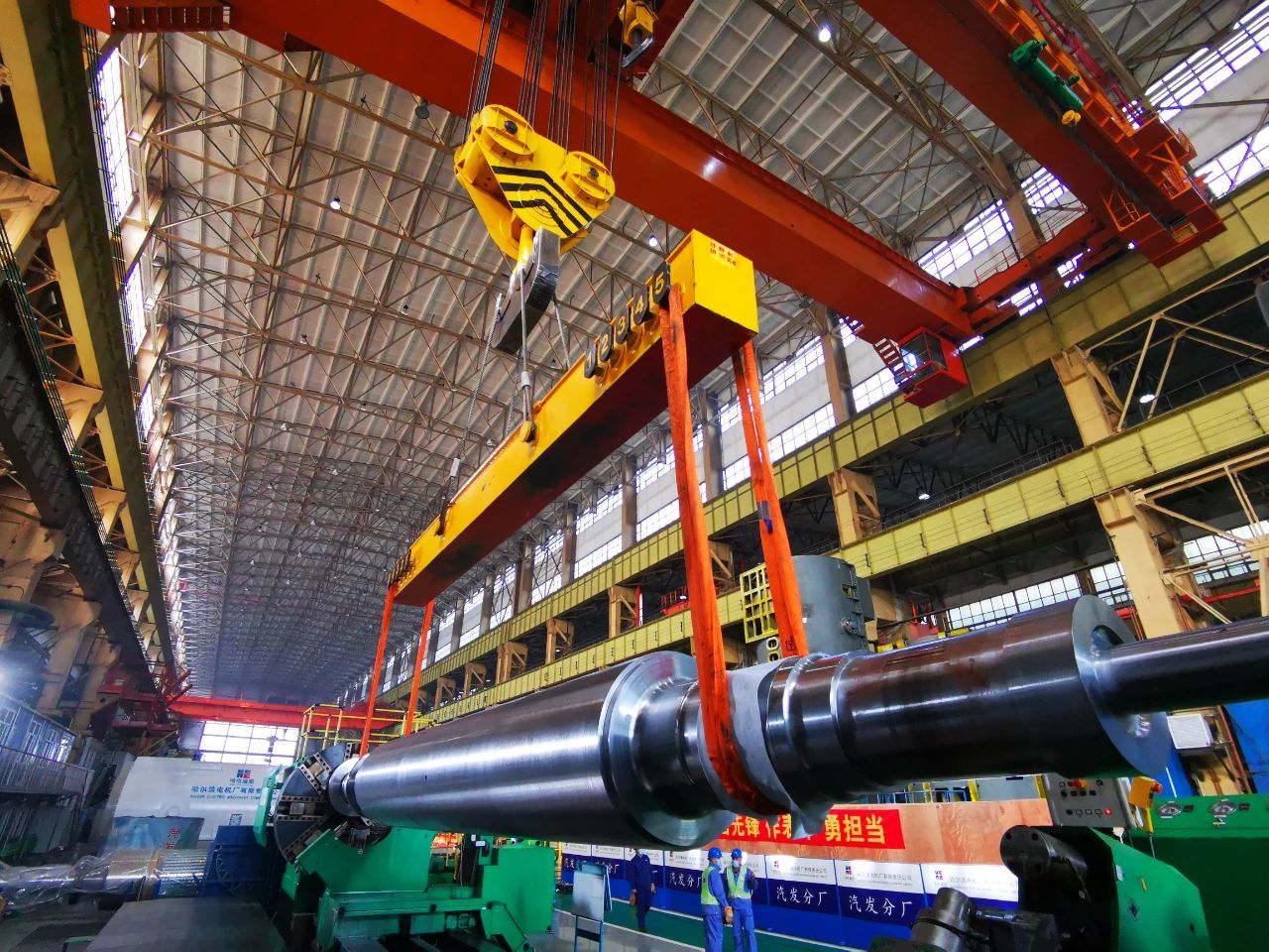 電機(jī)公司操作人員正在對內(nèi)蒙古上海廟2號汽輪發(fā)電機(jī)轉(zhuǎn)軸進(jìn)行加工。