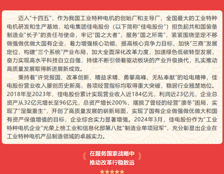 佳電股份:聚焦全面深化改革 踐行綠色低碳轉(zhuǎn)型 加快培育發(fā)展新質(zhì)生產(chǎn)力