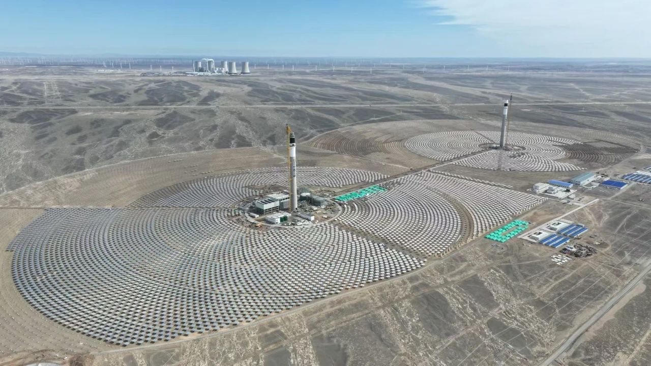 三峽恒基能脈瓜州項目是國家“沙戈荒”新能源大基地標(biāo)桿工程,其創(chuàng)新的雙塔設(shè)計通過東西兩座約200米高的吸熱塔與4400畝鏡場協(xié)同運行,在同等鏡場面積下可提升約24%的聚光效率,進(jìn)而提高發(fā)電能力。哈電鍋爐為此項目量身研制的吸熱器設(shè)備,采用自主研發(fā)的熔鹽介質(zhì)高效吸熱技術(shù),攻克了吸熱涂料的附著、模塊化結(jié)構(gòu)設(shè)計及組裝三大核心難題。其中,管材選用及相應(yīng)的結(jié)構(gòu)設(shè)計確保設(shè)備在極端工況下的長期穩(wěn)定性;模塊化設(shè)計則通過標(biāo)準(zhǔn)化組件拼裝,實現(xiàn)雙塔吸熱系統(tǒng)與儲能裝置的高效聯(lián)動,為全球光熱電站建設(shè)提供可復(fù)制的“中國方案”。