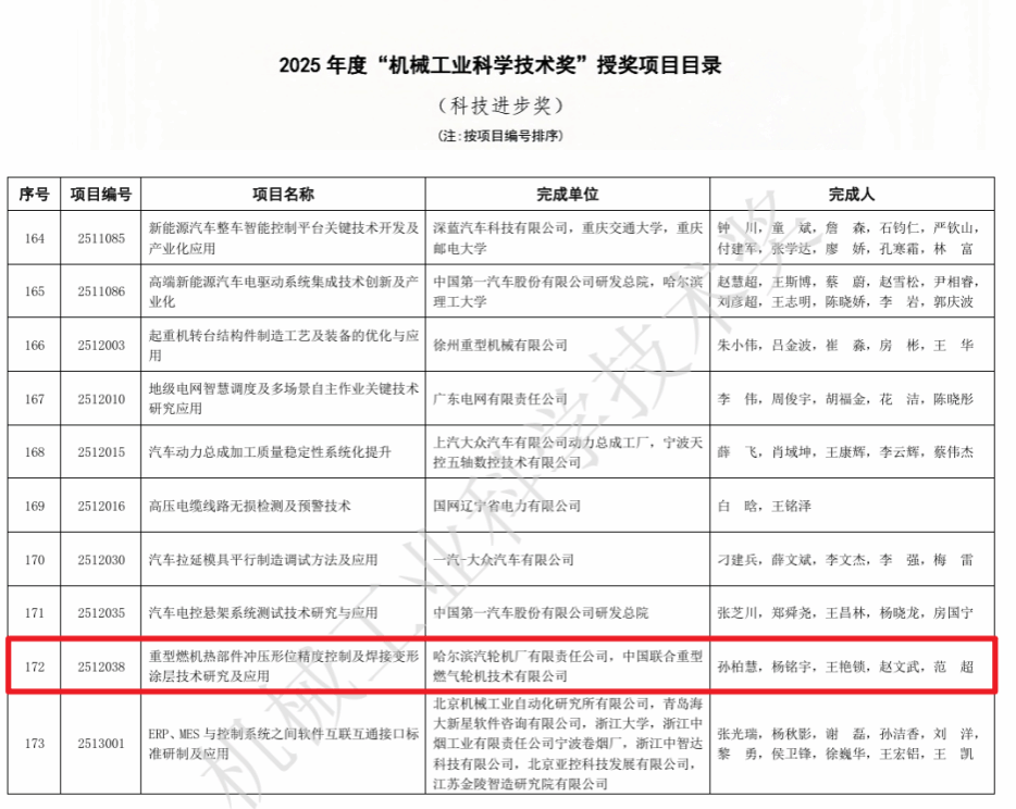 近日,中國機(jī)械工業(yè)聯(lián)合會與中國機(jī)械工程學(xué)會聯(lián)合發(fā)布《關(guān)于表彰2025年度“機(jī)械工業(yè)科學(xué)技術(shù)獎”獎勵項(xiàng)目的通報(bào)》,哈電汽輪機(jī)主導(dǎo)的“重型燃機(jī)熱部件沖壓形位精度控制及焊接變形涂層技術(shù)研究及應(yīng)用”工人創(chuàng)新項(xiàng)目,榮獲2025年度機(jī)械工業(yè)科學(xué)技術(shù)獎二等獎。