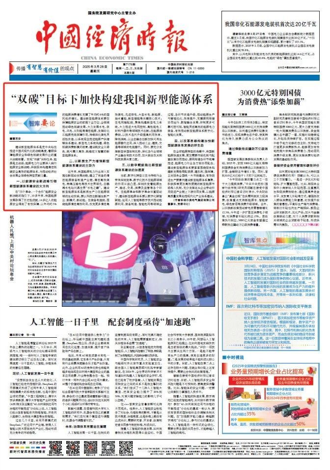 3月28日,國務(wù)院發(fā)展研究中心主管主辦的《中國經(jīng)濟(jì)時(shí)報(bào)》頭版頭條“智庫要論”專題刊發(fā)哈電集團(tuán)董事長、黨委書記曹志安《“雙碳”目標(biāo)下加快構(gòu)建我國新型能源體系》一文。