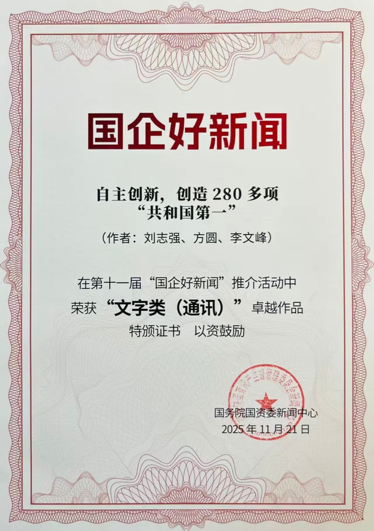 近日,第十一屆“國企好新聞”推介作品正式揭曉,哈電集團(tuán)推介作品《自主創(chuàng)新,創(chuàng)造280多項(xiàng)“共和國第一”》,從全國央國企千余件優(yōu)秀作品中脫穎而出,榮獲僅5件作品獲評的“文字類(通訊)”最高獎(jiǎng)項(xiàng)——卓越作品。同時(shí),哈電集團(tuán)參與的“科技創(chuàng)新主力軍”專題宣傳等5項(xiàng)作品榮獲特別推介作品。