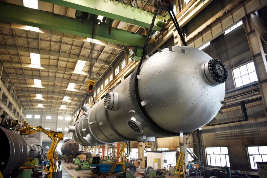 鍋爐公司充分利用獨有的應力分析設計資質,成功研制出日投煤量3000噸神華榆林CTC-1水煤漿氣化爐及日投煤量3300噸內蒙古匯能煤化二期四噴嘴水煤漿氣化爐,連續(xù)刷新日投煤量世界紀錄,推動煤炭資源清潔利用。成功研制出國產化首批神華榆林CTC-1項目兩臺戴維甲醇反應器,更是打破了國外公司長期壟斷的局面。承制的盛虹煉化一體化項目輻射廢鍋、蒸汽過熱器采用煤碳清潔高效利用最為先進的技術路線,其回收顯熱可帶來十分可觀的經濟效益,具有廣闊的應用前景。