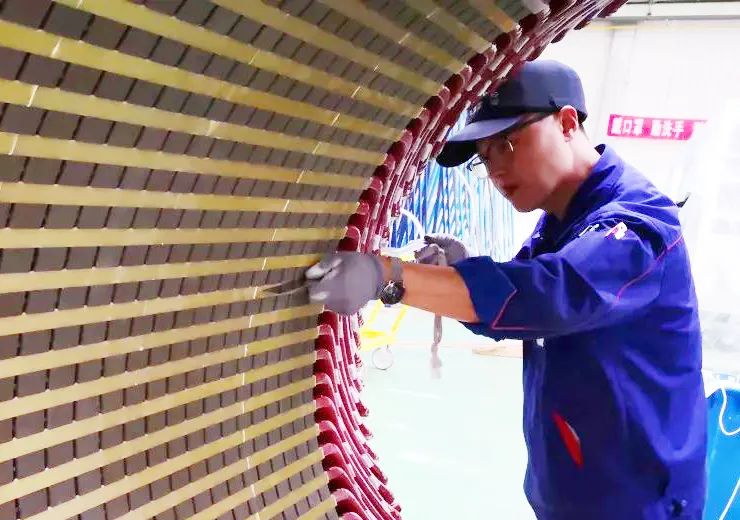 該機(jī)組為高轉(zhuǎn)速、臥式結(jié)構(gòu),對轉(zhuǎn)子結(jié)構(gòu)及運(yùn)行穩(wěn)定性設(shè)計要求高,項(xiàng)目自2018年6月開始執(zhí)行。在項(xiàng)目的研究過程中,電機(jī)公司技術(shù)人員結(jié)合機(jī)組性能要求,反復(fù)優(yōu)化電磁負(fù)荷、絕緣系統(tǒng)、冷卻系統(tǒng)及結(jié)構(gòu)強(qiáng)度等,以達(dá)到最優(yōu)匹配設(shè)計,出色地完成了國內(nèi)首臺自主研發(fā)全功率變速恒頻發(fā)電電動機(jī)的研制,并掌握了核心技術(shù),為我國實(shí)現(xiàn)“雙碳”目標(biāo)、減少可再生能源棄電,推動多能互補(bǔ)、協(xié)同優(yōu)化新能源電力綜合開發(fā)提供了工程參考實(shí)例。