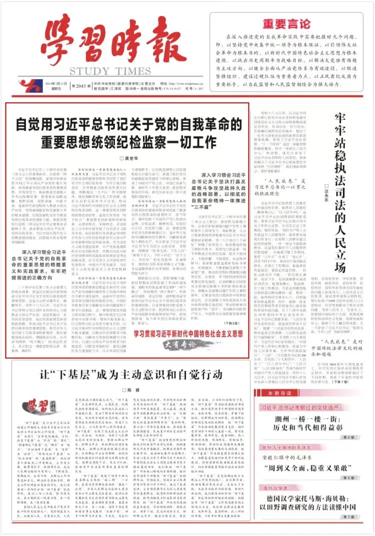 習(xí)近平總書記在二十屆中央紀(jì)委三次全會上的重要講話,從統(tǒng)籌“兩個大局”的戰(zhàn)略高度,深刻總結(jié)新征程開局之年全面從嚴(yán)治黨的重大成就,深刻闡述黨的自我革命的重要思想,對持續(xù)發(fā)力、縱深推進反腐敗斗爭作出戰(zhàn)略部署。重要講話高瞻遠(yuǎn)矚、視野宏闊、思想深邃、內(nèi)涵豐富,是新時代新征程深入推進全面從嚴(yán)治黨、黨風(fēng)廉政建設(shè)和反腐敗斗爭的根本遵循。紀(jì)檢監(jiān)察機關(guān)作為推進黨的自我革命的重要力量,要把思想和行動統(tǒng)一到習(xí)近平總書記重要講話精神上來,縱深推進全面從嚴(yán)治黨、黨的自我革命,為以中國式現(xiàn)代化全面推進強國建設(shè)、民族復(fù)興偉業(yè)提供堅強保障。