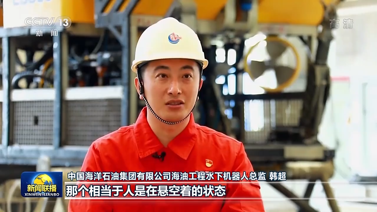 中國海洋石油集團(tuán)有限公司海油工程水下機(jī)器人總監(jiān) 韓超:你的手腳要并用,然后你要在抓的同時(shí),后面你不要忘了還有一條臍帶纜是連著你的。你再稍微一用力,那通訊要不然斷了,要不然就絕緣報(bào)警。