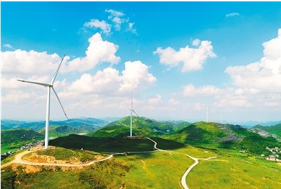 貴州省銅仁市憑借區(qū)位優(yōu)勢和豐富的風能資源,加速風電產(chǎn)業(yè)布局與發(fā)展。南方電網(wǎng)貴州銅仁供電局全力服務綠色清潔能源的高效并網(wǎng)和充分消納,助推地方實現(xiàn)低碳轉(zhuǎn)型目標。圖為該市松桃苗族自治縣盤石鎮(zhèn)芭茅村山脊上,風力發(fā)電設備隨風轉(zhuǎn)動發(fā)電。向世杰攝(人民視覺)